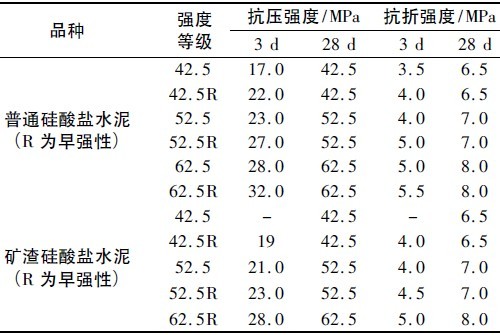 表1 普通硅酸鹽水泥和礦渣硅酸鹽水泥的強(qiáng)度要求( GB175 - 99,GB1344 - 92)Table 1 The strength requirement of ordinary portlandcement and slag silicate cement ( GB175 - 99,GB1344 - 92)