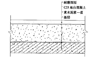 地面的基本構(gòu)造一般自下而上,分為:底板混凝土-素水泥漿一道-地臺混泥土-3mm 厚耐磨材料層(其基本結(jié)構(gòu)示意如圖1)