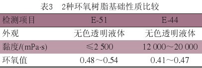由于環氧樹脂分子量的不同,分為固體環氧樹脂和液體環氧樹脂兩種,根據無溶劑環氧自流平地坪涂料的要求:為了獲得良好的流平性,便于施工,所以應選用低分子量的液體環氧樹脂[6-12]。表3是2種液體雙酚A型環氧樹脂的比較。
