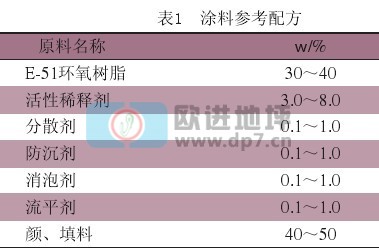 環氧樹脂E-51:工業級,藍星化工新材料廠無錫樹脂廠;通用色漿:自制;超細天然硫酸鋇:工業級1.2涂料配方(見表1)