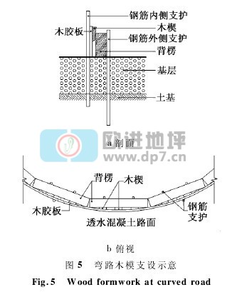 2)透水混凝土面層在普通混凝土基層上施工,兩側是綠化帶,透水混凝土與普通混凝土寬度相同,增加了支模難度。