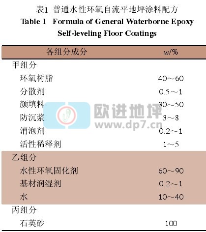 普通水性環(huán)氧自流平地坪涂料配方如表1所示。