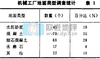 凡以水泥作膠結(jié)料的水泥砂漿、混凝土、水磨石等地面面層,習(xí)慣上稱水泥類地面。水泥類地面具有強度高、剛性好、取材容易、造價適中、施工及維修方便等優(yōu)點,它在我國工業(yè)建設(shè)中得到最廣泛的應(yīng)用。據(jù)機械工業(yè)部對215個機械工廠車間、工段的調(diào)查統(tǒng)計,水泥類地面約占90%,詳見表1。調(diào)查表明,除水磨石面層外,各種水泥類面層存在不同程度的起灰、起砂現(xiàn)象,不僅有礙人體衛(wèi)生,而且影響儀器設(shè)備的使用壽命,影響零件的加工精度或產(chǎn)品質(zhì)量,水泥地面的上述弊端,使其應(yīng)用范圍受到限制。如何揚其所長,避其所短,保持水泥類地面廣泛而經(jīng)濟的實用價值,實屬亞待解決的課題。《工業(yè)建筑地面設(shè)計規(guī)范》修訂組,在調(diào)查研究的基礎(chǔ)上,已將各地防止水泥地面起灰的有效措施和幾種新型的水泥地面類型列人規(guī)范,現(xiàn)分別介紹如后。