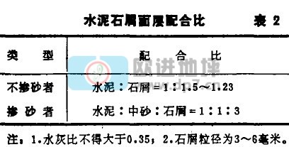 水泥石屑面層的主要成分是水泥和石屑,不摻砂或摻少量中砂,其厚度一般為20~30毫米,配合比及對材料的技術(shù)要求見表2。