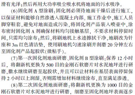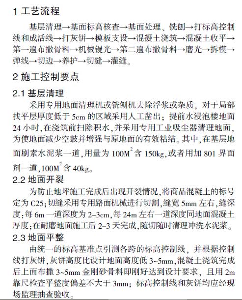 關鍵詞:工藝流程;施工控制要點;耐磨地坪;密封固化劑