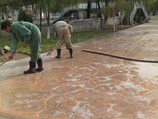 | | 藝術地坪施工10. 用水或去污劑清洗表面, 清洗擦刷表面一定要保證整個地坪清洗程度一致,否則會造成地面顏色深淺不一; |